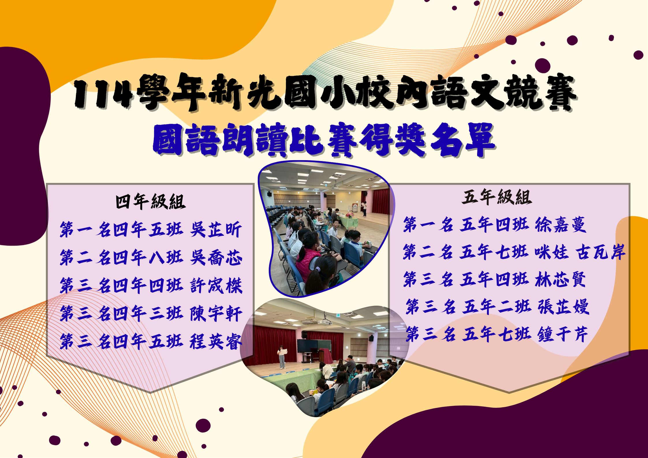 114學年度校內語文競賽得獎名單~國語朗讀組